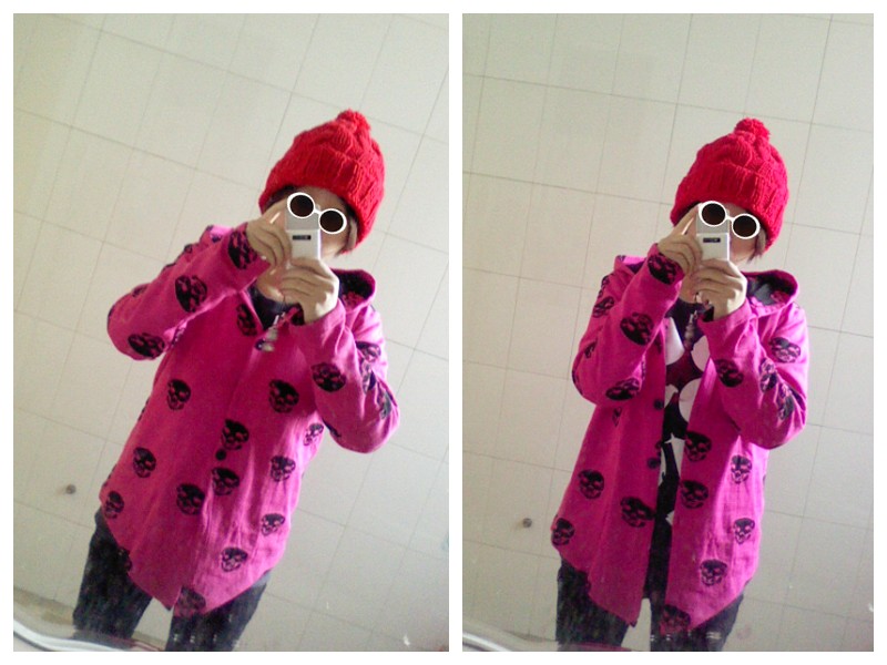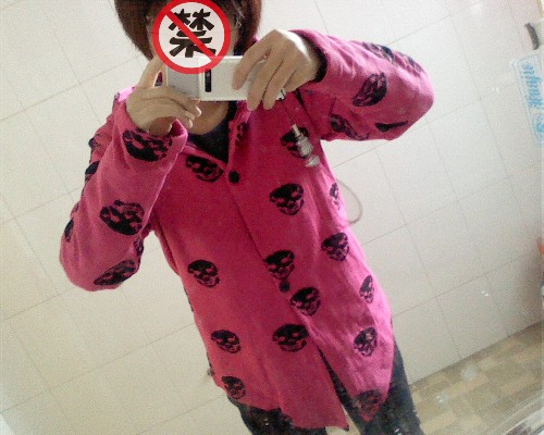 刚刚拿到 骷髅头毛线衣 于是就爬上来 了