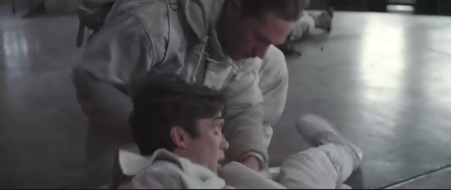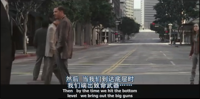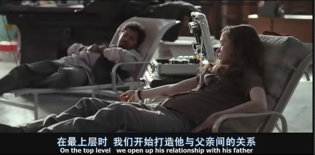 从这幅图我们看到伪装者扶起了富二代。他们两在密码门外面,这时老头已经在密码门里面,所谓inception计划不是要让那个富二代老爸跟富二代说“请不要变为另一个我”(也就是种下所谓的种子),可是这得有人去装那个老爸然后跟儿子说啊,就好像主角把mal的陀螺弄转了然后关上保险箱的门的原理一样。