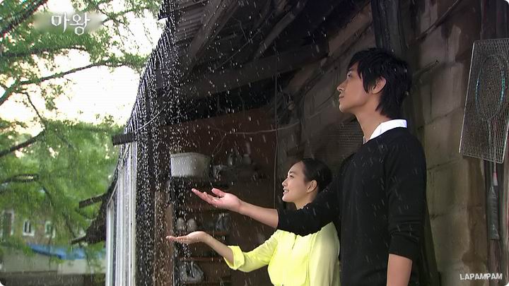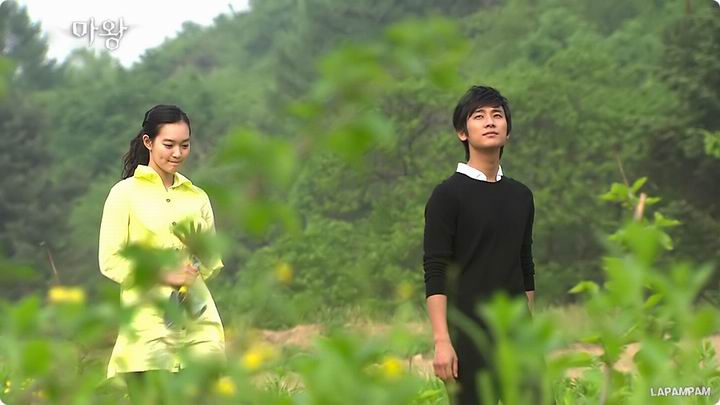 《魔王》中的绿色是属于承河和海茵的两个人的。农庄小路漫步、屋檐下避雨、田间种下黄水仙的那些记忆,虽然已经模糊了,但是回忆那些画面的时候,却分明看见了绿色。在他们回眸的微笑里、温柔的注视中,在他们并肩的背影下、紧握的双手间,在他们的眼中、在他们的身边,爱情如同春天的树木一样无声无息地发芽、生长。