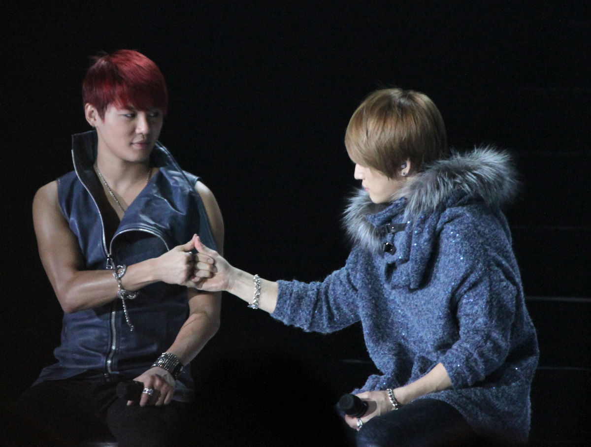 看视频的时候看到金在中很自然地转过身去向金俊秀伸出手,