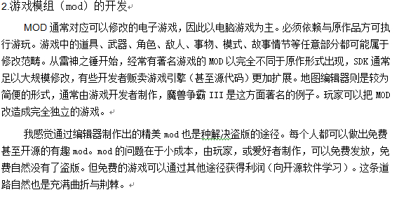 独立游戏可以很好的解决盗版的问题。同时,作为独立游戏人,对游戏的热爱,思考,以及创意自然不在话下,只是,中国游戏业,和中国大环境一样浮躁,没有信仰只有金钱。不过,随着经济的增长,和独立游戏的发展,中国的独立游戏的未来并不黑暗。同时,中国目前出现的一些独立游戏,的确做出了很好的领头羊的作用,虽然目前只是颗嫩芽,但是,终会成为参天大树。