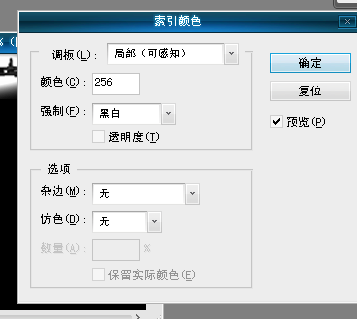 然后 调板:局部(可感知) 颜色:256 强制:黑白 杂边:无 仿色:无