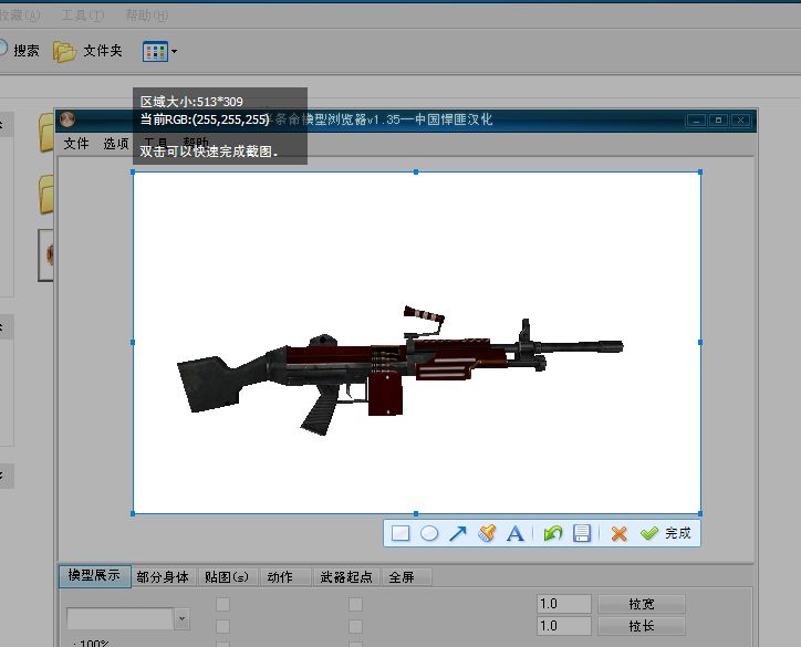 首先,当然是找枪的素材,我推荐用武器的W模型,用HLMV打开它,调整好位置,然后用QQ截图,或者其他的截图,为了方便以后修改,HLMV的背景要选为纯白色
