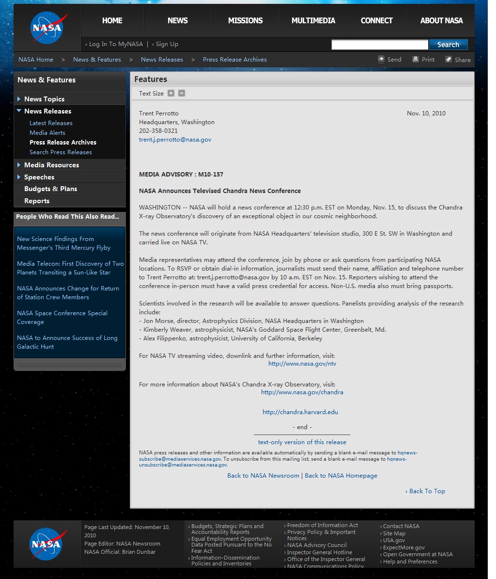 "discovered an exceptional object by the x-ray observation"