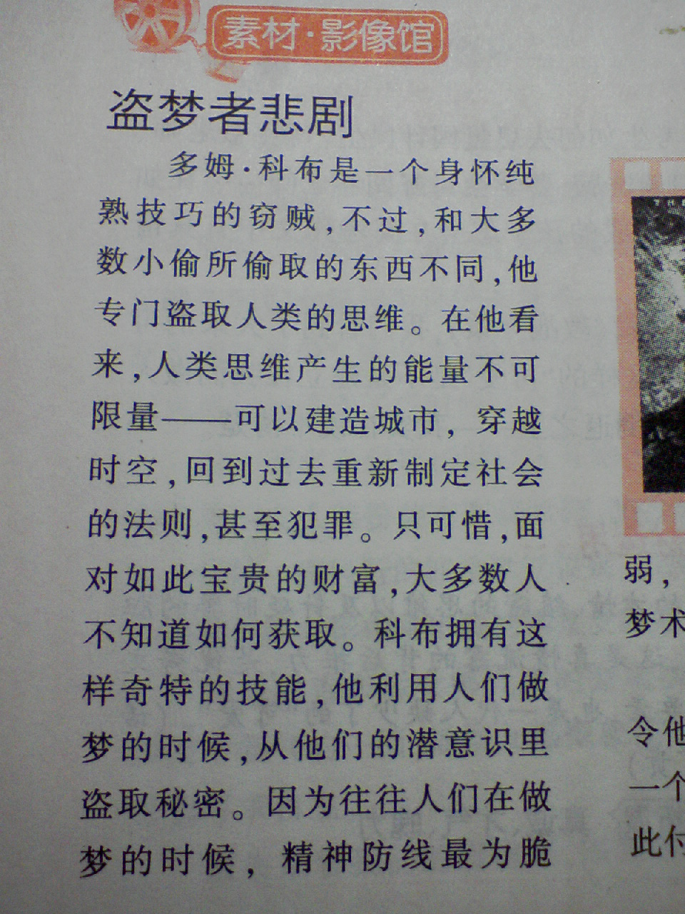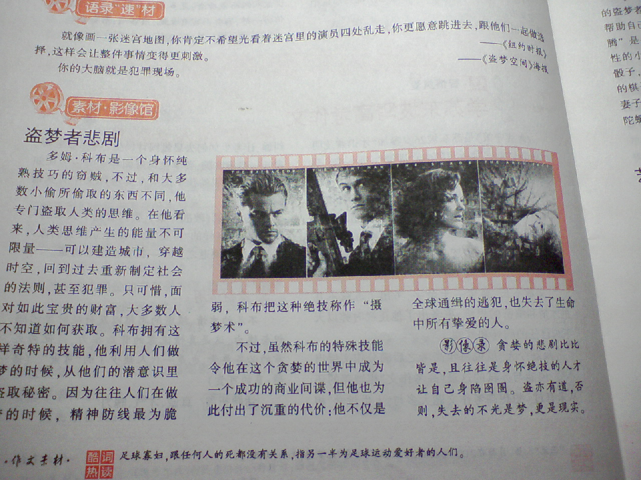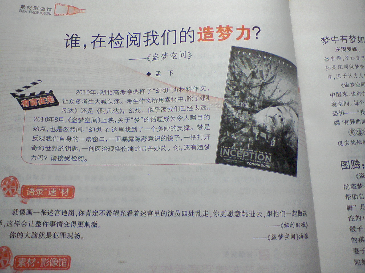 还有一切作文素材杂志上介绍 盗梦空间的图.~