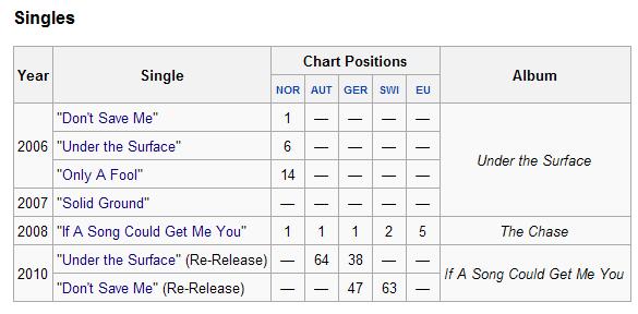 "Don't Save Me" 是特的首张专辑Under the Surface的首支单曲,在2006.02.02发行,首次打榜第三,后升至第一并持续五周.