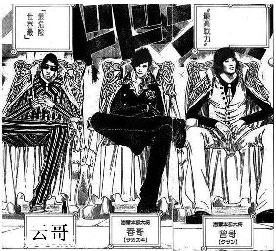 海贼王里面的三大将…黄猿,赤犬…还有个啥不记得了…哈