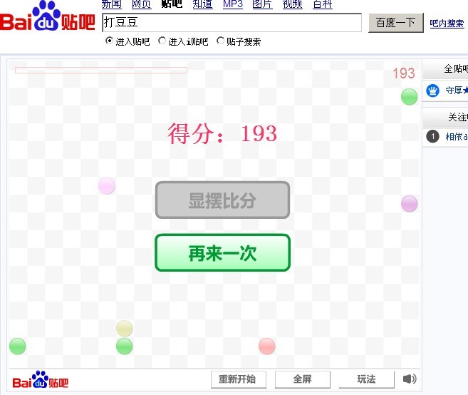 我打了 193 分---哈哈哈-可是还剩下 6 个豆豆 怎么打也不会 200 呀