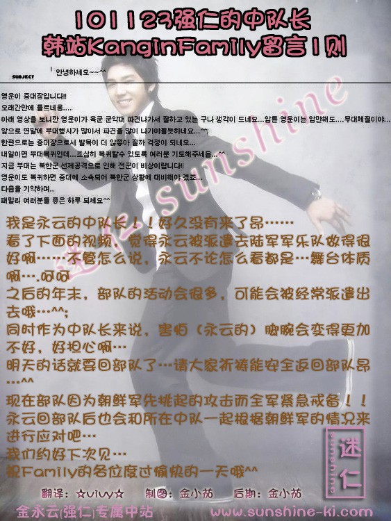 ┣101124★茄子┫强仁的中队长在韩站KanginFamily留言1则