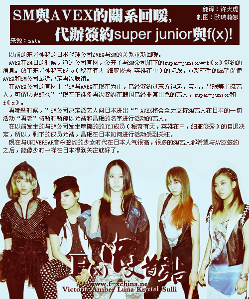 ┣101125★新闻┫SM与AVEX的关系回暖,代办签约super junior与f(x)