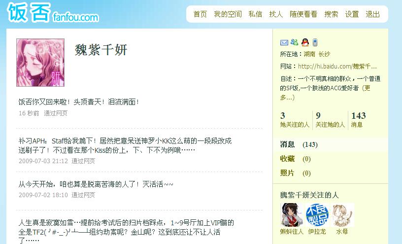虽然个人来说喜欢饭否那种简洁的风格,但是新浪那边有趣的人也很多,也不会彻底放弃。