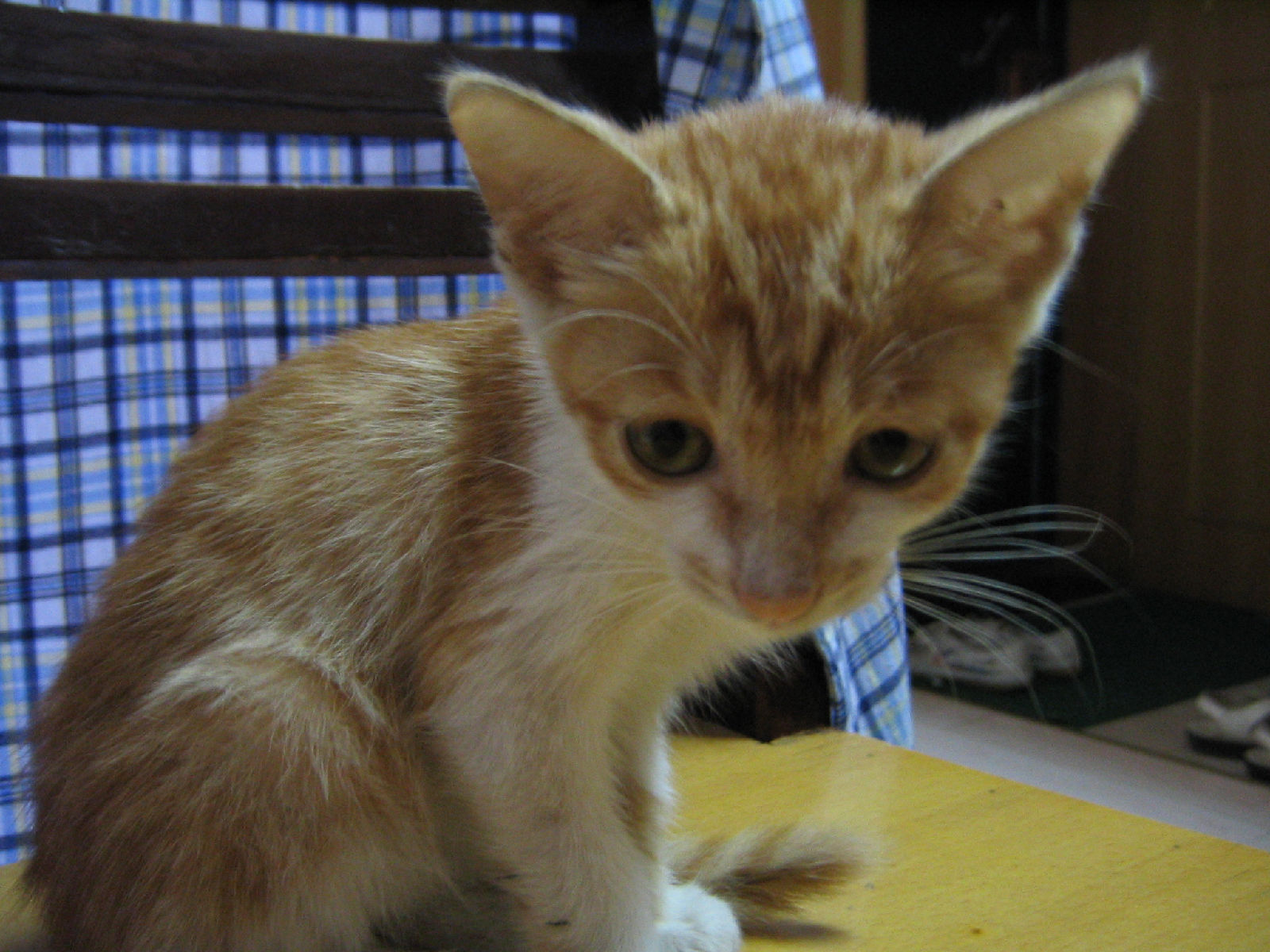 小小猫很瘦,但样子还蛮可爱的。我捉它的时候,它蹒蹒跚跚地躲进了瓦片堆里,想必这就是它这些天来的藏身之所,联想起连日来的大暴雨,真不知这