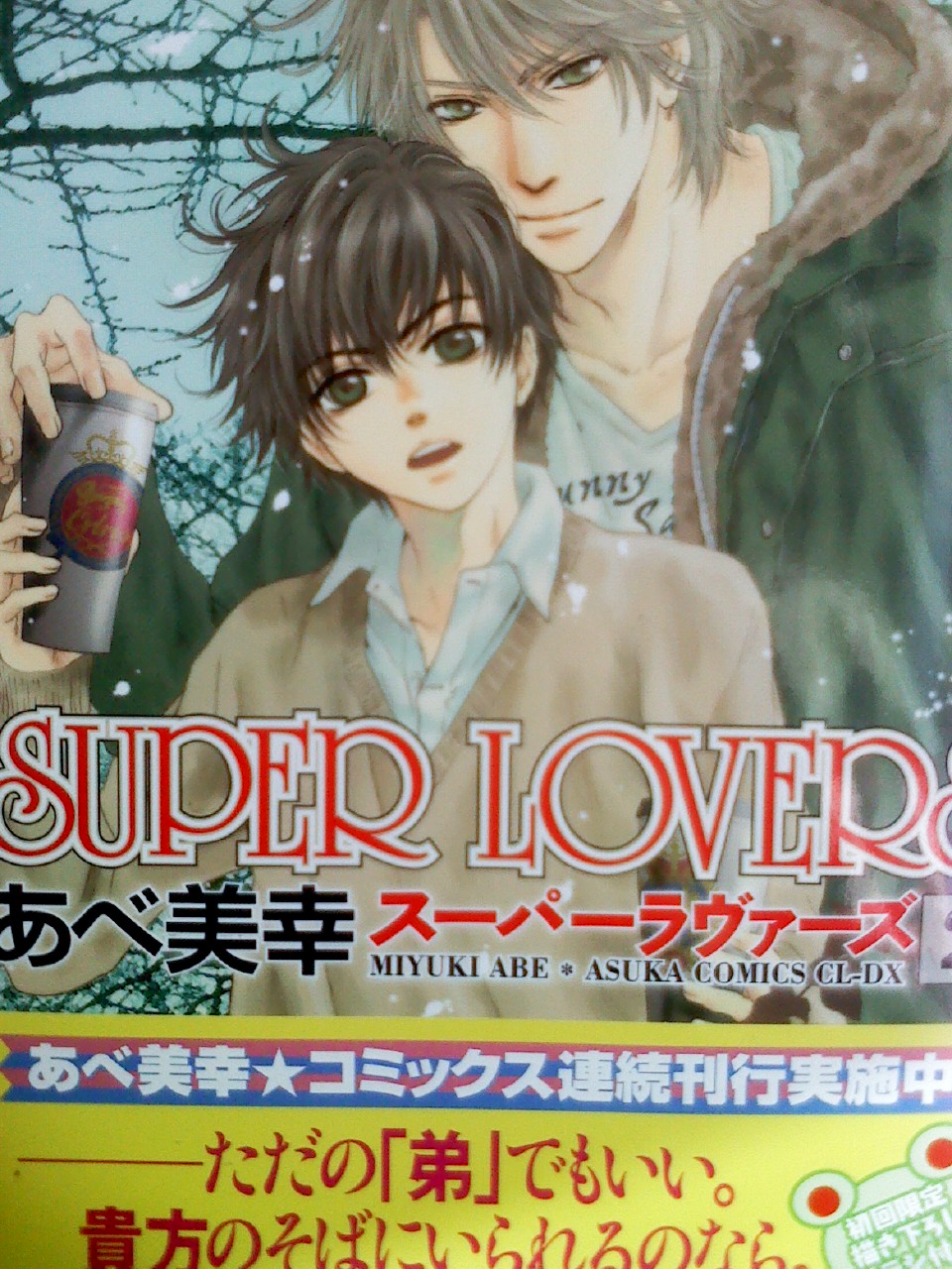 恭贺阿部老师的《SUPER LOVERS 2》顺利上市!!~~撒花~~相信看了这么久阿部老师的作品,你对阿部老师有了一定的了解了。细腻的画风,触人心弦的剧情,这就是《SUPER LOVERS 1》之所以能成功销售13万本的理由!阿部老师可以说是耽美界的大师,可除了那经典的《微忧青春日记》为人所知,很多亲都是通过SL认识阿部老师的。大家可以尝试翻看阿部老师以前的作品,你会发现在那岁月中留下了阿部老师多少成长的印记。你会惊喜,你会感动……