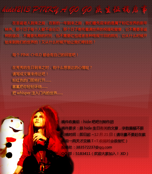 稿件要求:跟hide生日有关的文章,字数篇幅不限
