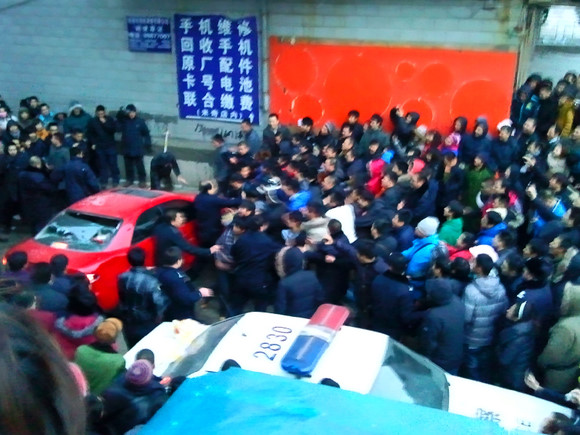稍后,给力的东北人开始给力了,暴砸马六,无数不明物体飞向马六,感觉此刻大家都是炮兵出身。。。相机闪光灯闪烁,随后防暴JC和记者赶到维持秩序效果不明显,受伤老太以送医院。