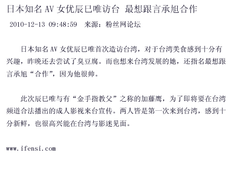 【☆Jerry】101215〖新闻〗日本知名女优最想跟言承旭合作(粉丝网)