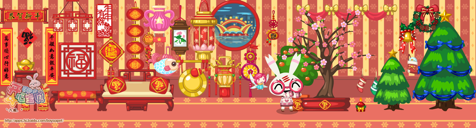 新年桃花满福树,换圣诞帽加圣诞高跟鞋,送新年撞树挂饰