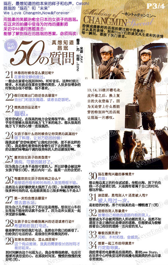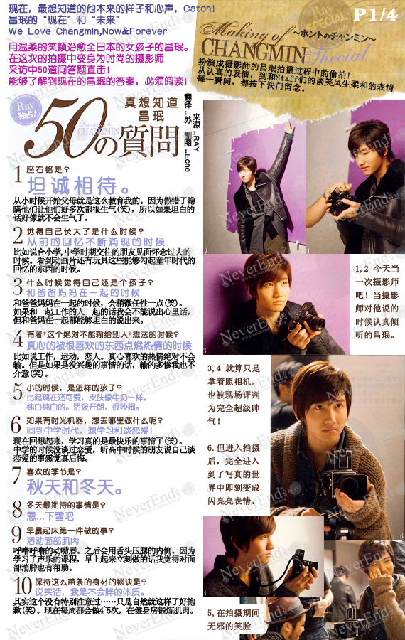 9.一站在照相机面前,就给我们看到不凡的集中力以及不停变换的完美的表情的昌珉。
