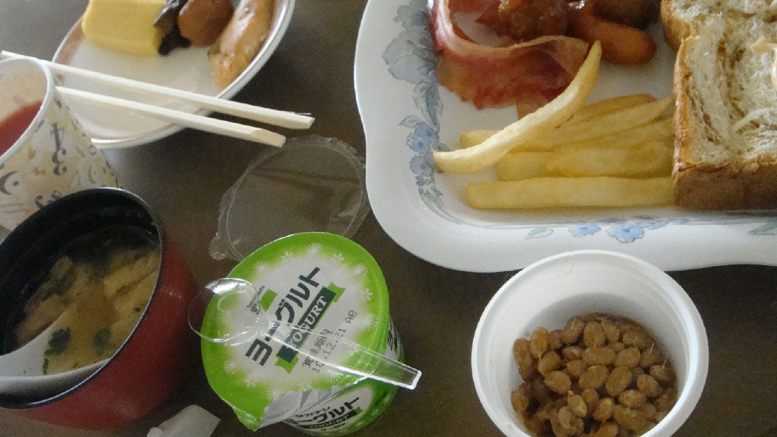 接下来早饭吃了传说中的纳豆(每个人都说不好吃,除了我~你就吃货一个