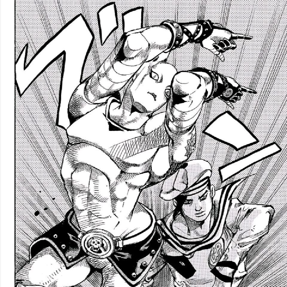 别的JOJO喊双主角都可能被指责ky;但是jo7的名字“sbr”其实就是杰洛的专武“铁球奔跑”,第一卷的封面是杰洛的正面大脸(图里这张),其实就是双主角了