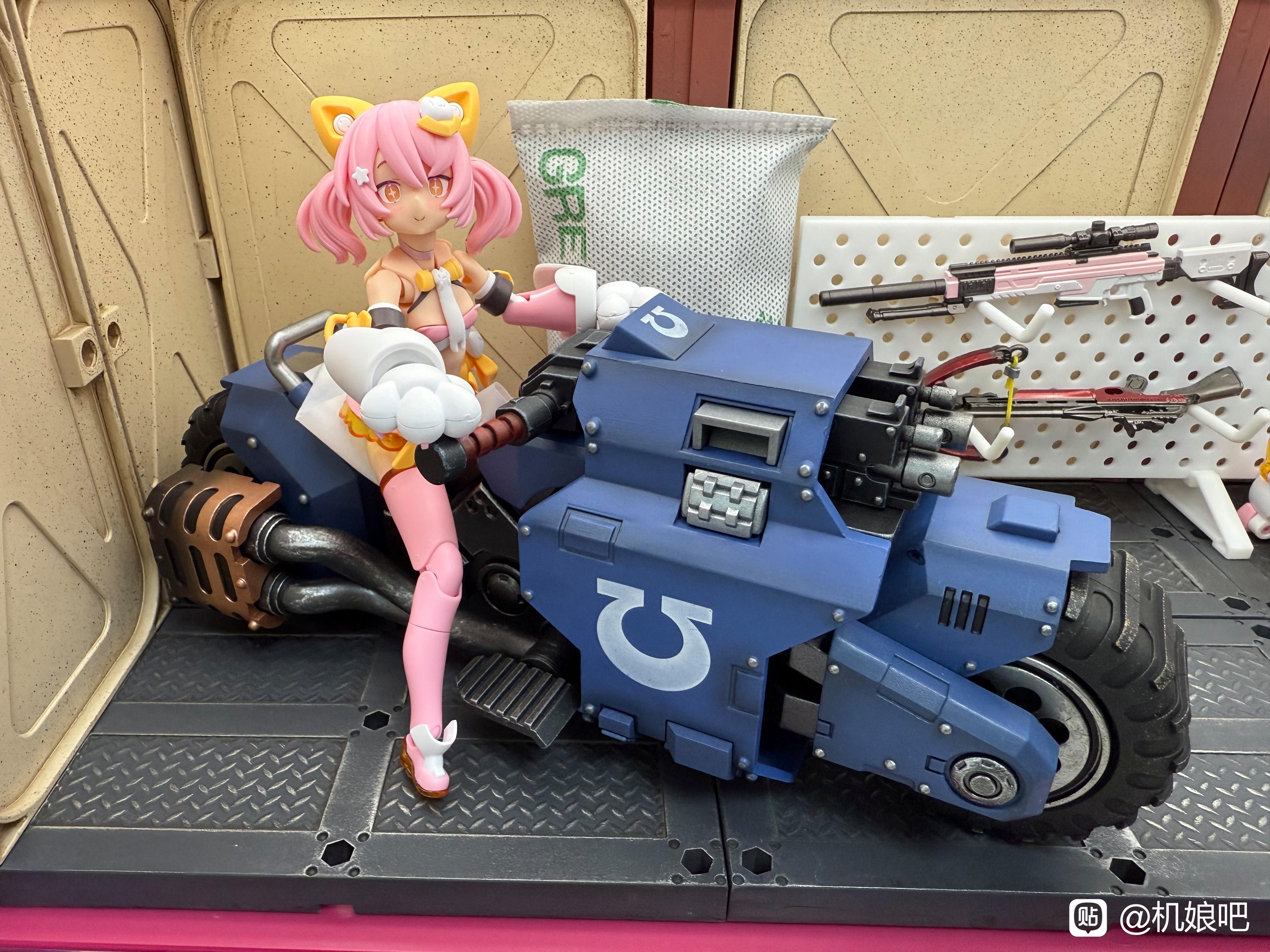 反差萌?猫猫骑暗源这个车也太酷了吧。屁股下面垫了张figma装零件的那种袋子怕蹭了