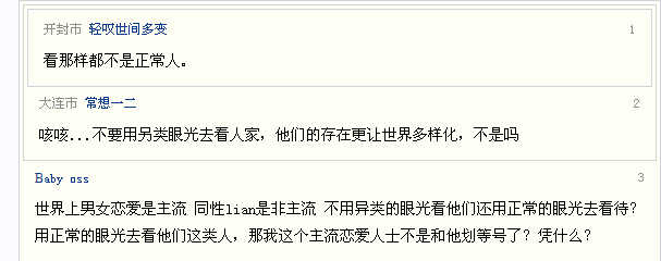 回复里偏激的还是很少啊,要我说,如果硬把同性恋说成非主流而把有老婆却在外面花擦擦或整天去外面找ji女泄<和谐>欲或沉迷于A片SY都算做是主流的话,那还不如非主流一点呢
