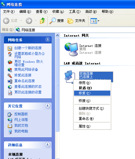 1.在网上邻居上点击鼠标右键 选择属性 ,弹出右边的窗口(本地连接一般是有线网卡)