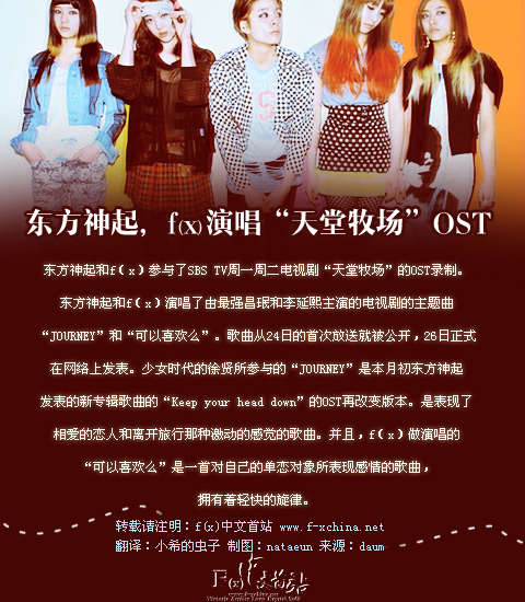 ★U_Min★[110126--消息]东方神起,f(x)演唱“天堂牧场”OST