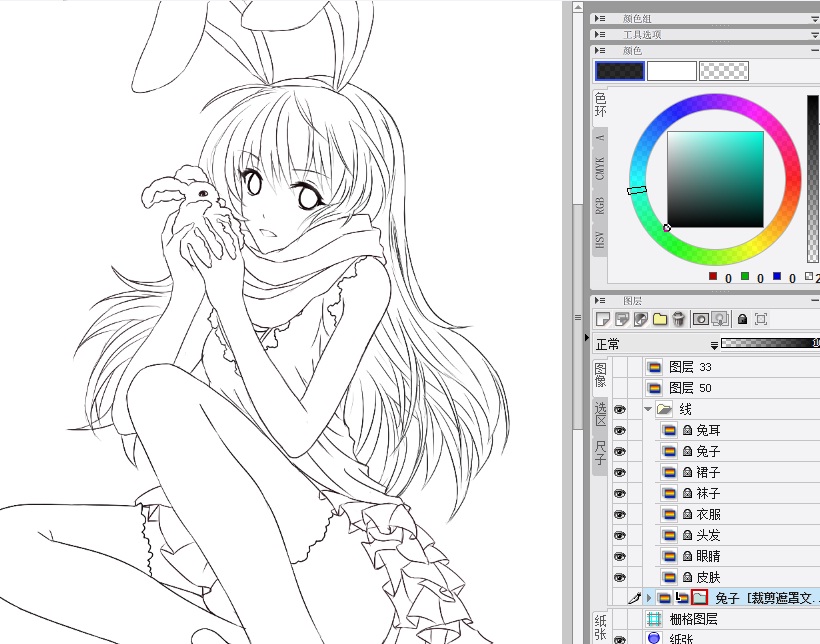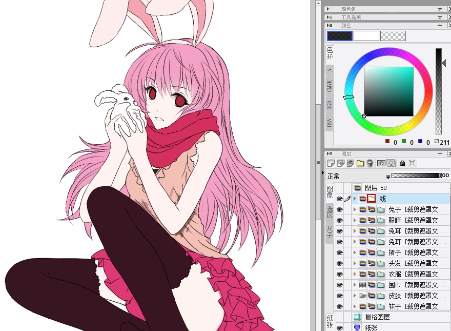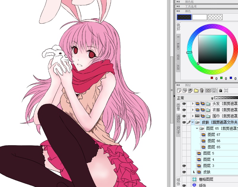 当然上色也是分图层的,然后建立遮罩文件夹,进入上色阶段咯
