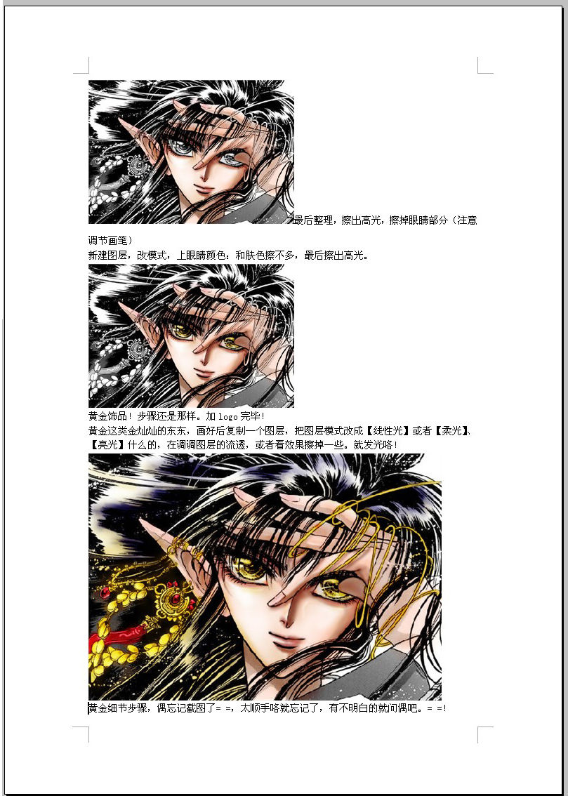 (肤色、金色、宝石色、衣服、发色、白色的阴影等······)