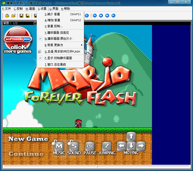 这个软件叫:珊瑚青苹果Flash播放软件2.1,这套软件的优点是可以打开任何Flash文件,而且可以把屏幕放大!!!!!非常适合玩MFF系列的Flash游戏